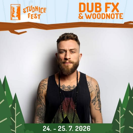 Na Studnici letos přivítáme rodáka z australského Melbourne a mága live loopingu – Dub Fx! Z pouličního performera Bena Stanforda se během dvou dekád stal světový fenomén, který si publikum získává čistou energií, beatboxem, live loopingem a naprosto autentickou show. Po jeho boku nebude chybět tradiční parťák Mr Woodnote se saxofonem. Tahle dvojice zaručuje show, která promění les v pulzující taneční prostor. Těšíme se!
