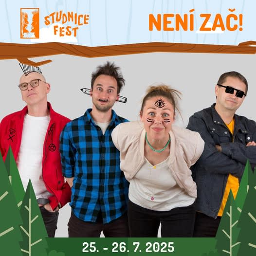 Letošní Studnici odstartujeme porcí laskavého punku, který nám do lesa přiveze Není zač! Kapela, která si umí udělat srandu ze sebe i ze života. #vidimesevlese