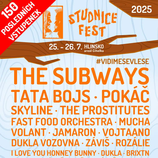 🚘 Jednou z novinek je, že parkovné můžete letos koupit už nyní v rámci předprodeje, a tak pro Vás může být letošní fesťák komplet cashless! 🍺Další novinka bude na čepu – krom lokální Chotěboře budete moct na jedom ze stánků ochutnat American Pale Ale nebo nealko IPU Krystus z pivovaru Clock. 💵 Všechny platby v areálu budou typicky pomocí NFCtronu jako v předchozích letech. 🚙 V rámci dopravy upozorňujeme, že bude nejspíš opět zavřený most v Hlinsku Blatně – sledujte aktuální info a případně se řiďte oficální objížďkou. 🎫 Poslední vstupenky mizí a je dost možné, že na místě už nebudou. ⛅ Areál je připraven na všechny druhy počasí, takže pod částečně krytým hledištěm, sezením nebo místem u baru se schováte jak před sluncem, tak i před deštěm. ℹ Kompletní info na našem webu: https://www.studnicefest.cz/informace/ #vidimesevlese